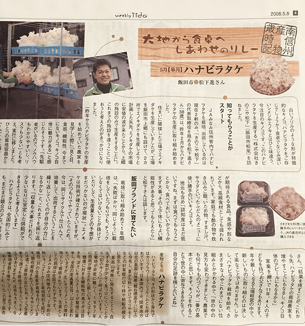 長野県飯田市で「はなびらたけ」を専門に栽培している。